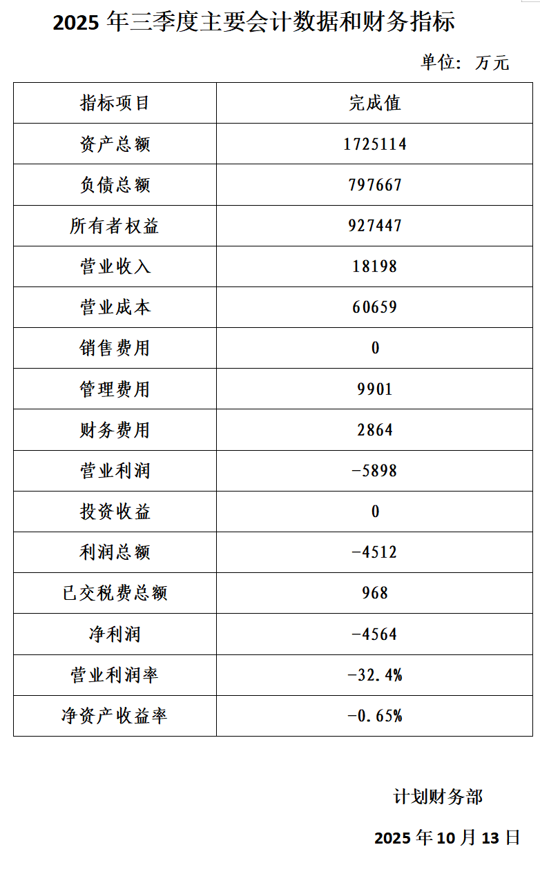 2025年三季度主要會計數據和財務指標